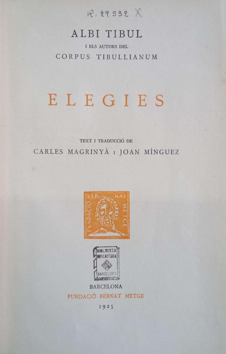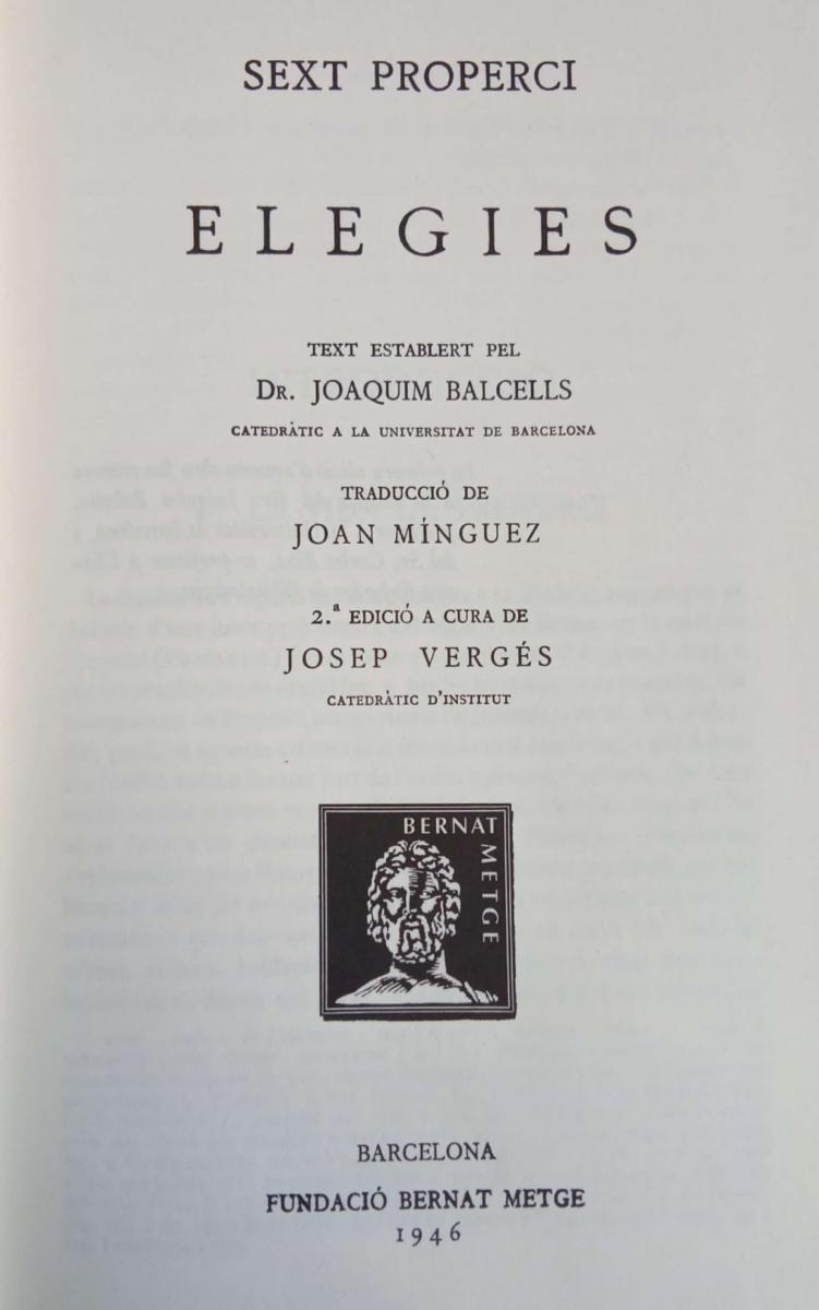 (85) Sext Properci, Elegies. Text establert pel Dr. Joaquim Balcells ...