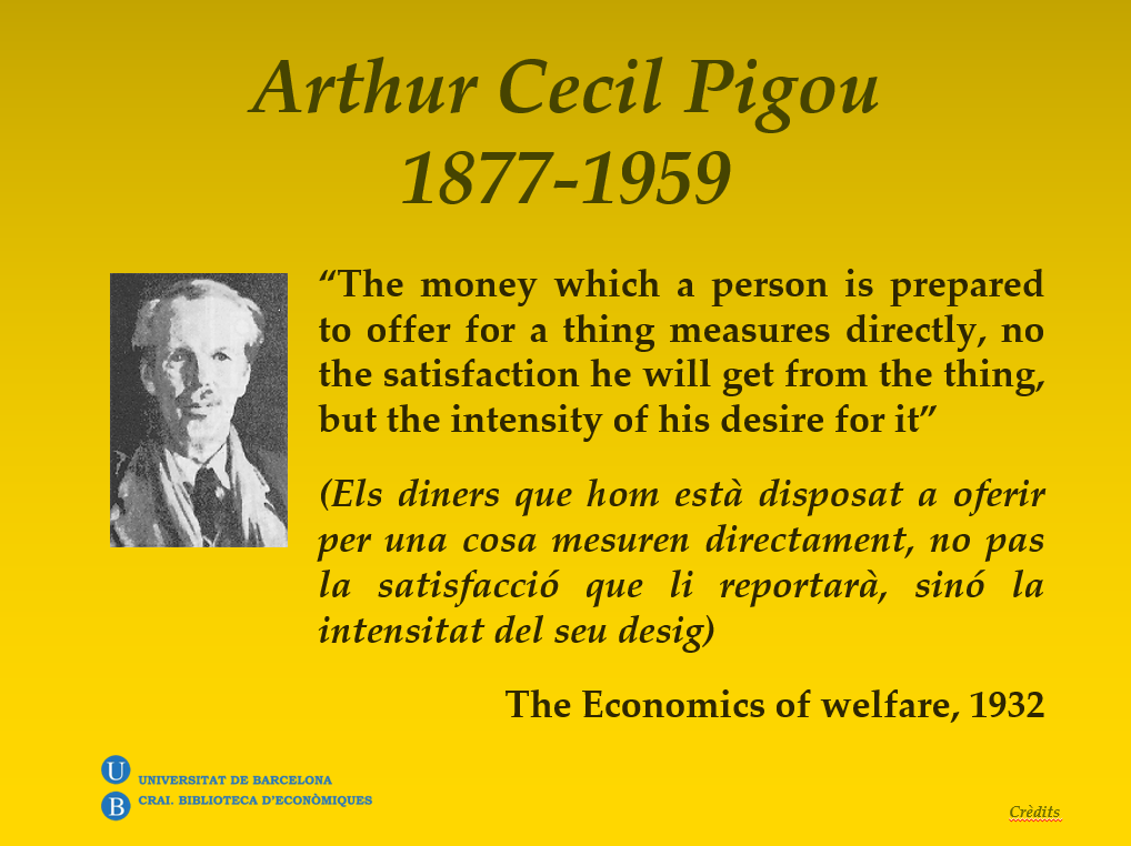 "Els diners que hom està disposat a oferir per una cosa mesuren directament, no pas la satisfacció que li reportarà, sinó la intensitat del seu desig" (The Economics of welfare, 1932).