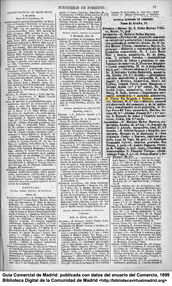 El 1915 apareix la primera càtedra de Política Econòmica d’Espanya, a l’Escuela Superior Central de Comercio de Madrid, ocupada per Víctor Pío Brugada. Posteriorment, es crea en aquesta escola el Laboratorio de Ciencias Económicas, i el Boletín per a la divulgació de l’activitat investigadora i docent de l’escola. Aquests esdeveniments tenen lloc en un context de renovació de la ciència econòmica espanyola en general, i de l’ensenyament de l’economia al país en particular. Les primeres dècades del segle XX són testimoni de l’esgotament de la vella escola liberal de pensament econòmic a Espanya i la irrupció de nous corrents portats per economistes joves formats a l’estranger.