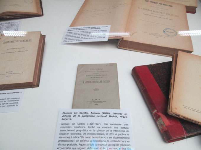 Aquesta exposició recorre l’evolució de les idees econòmiques a Espanya entre el darrer terç del segle XIX i les primeres dècades del segle XX a través d’una mostra d’algunes de les obres més rellevants dels principals economistes espanyols i estrangers d’aquesta època.