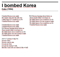 Cançó de l'àlbum Motorcade of Generosity, de Cake, el 1994. S'hi parla de la Guerra de Corea, sobre el que pensen els soldats, si sobreviuran o no, quina gent estan matant, si el que fan és bo o dolent.