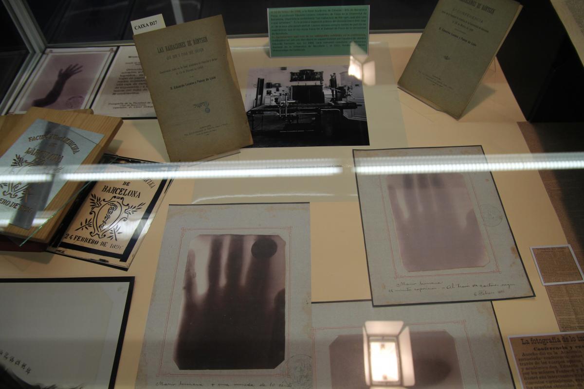 El 10 de febrer de 1896, a la Reial Acadèmia de Ciències i Arts de Barcelona Física, el professor Eduardo Lozano, catedràtic de Física de la Universitat de Barcelona, imparteix la conferència "Les radiacions de Röntgen, què són i per a què serveixen" . És la primera exposició pública del descobriment dels raigs X i de la seva alta penetrabilitat. Lozano donava compte també de part de les experiències que el seu equip havia fet al Gabinet de Física de la Universitat de Barcelona. En la mostra podem observar l’exemplar de la primera conferència pronunciada el 10 de febrer de 1896 i l’exemplar de la conferència del 25 de març del mateix any.