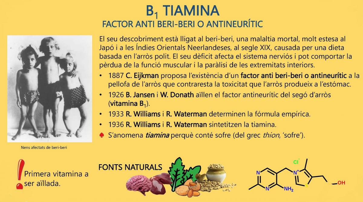 En la primera dècada del segle XX, la vitamina B o «factor hidrosoluble B» de McCollum es considera una substància única que cura el beri-beri i la pel·lagra.
