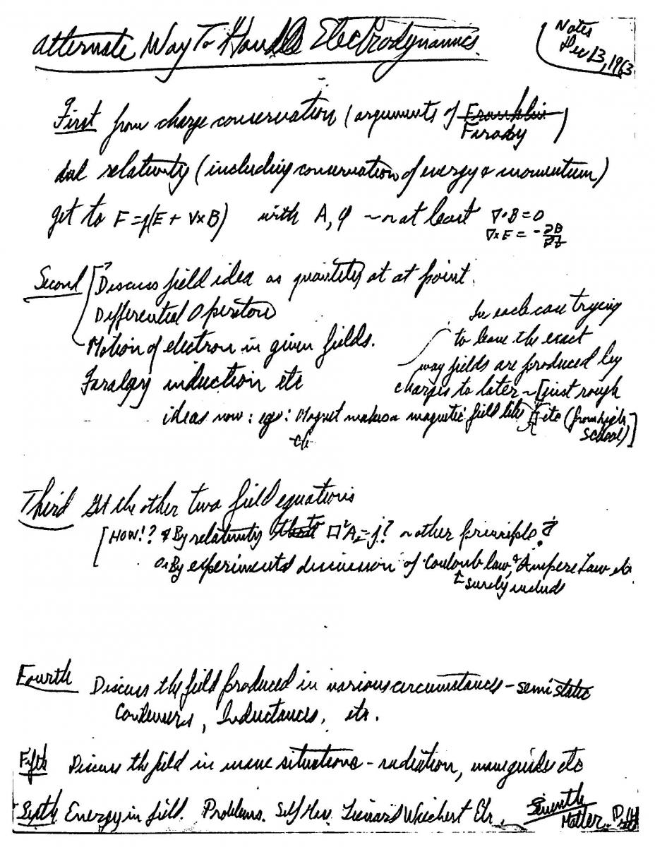 Notes originals de Feynman que cercava un nou mètode de presentació de l’electrodinàmica clàssica. No es van incloure finalment a The Feynman Lectures on Physics.