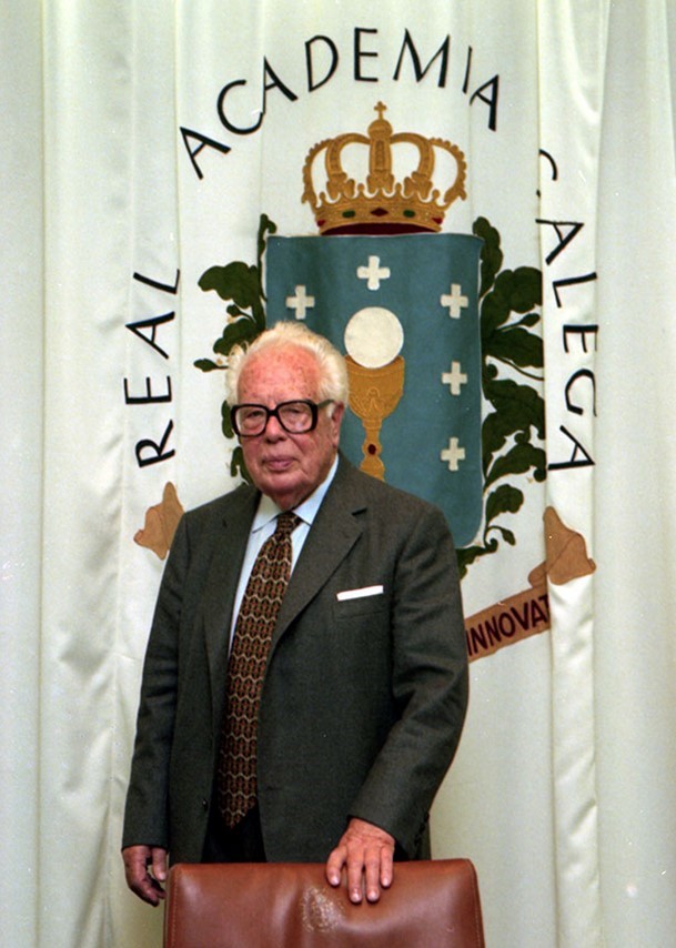 Fernández del Riego na Real Academia Galega en 1997. Fonte: https://shorturl.at/brsXY