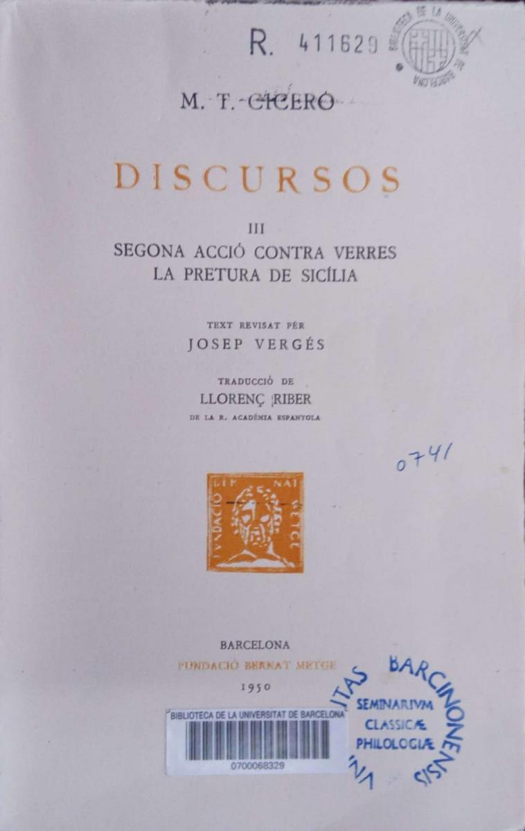 Després de la Guerra, la FBM va poder seguir comptant amb antics col·laboradors que havien manifestat adhesió al nou règim. Un dels més entusiastes fou Mn. Riber que, a la FBM, continuà amb la tasca de traduir l’oratòria ciceroniana, en concret, els discursos contra Verres (1947-1951).