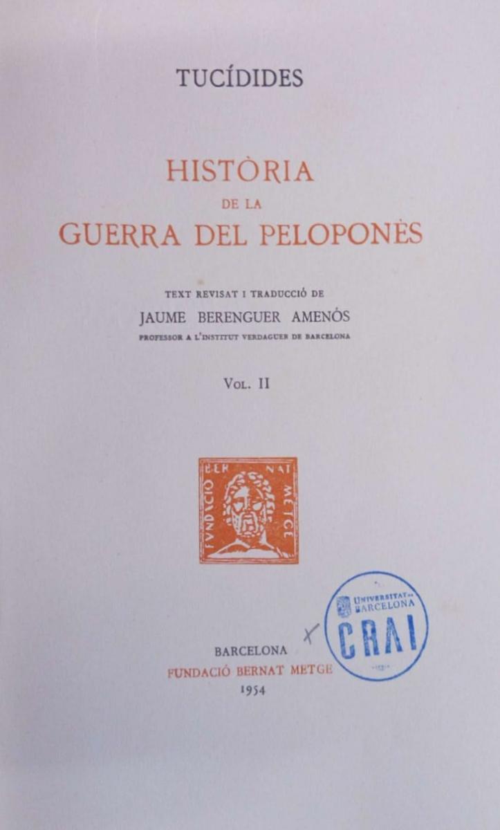 A la postguerra, també s’incorporà a la institució camboniana Jaume Berenguer Amenós (1915-1974). Després de passar pel Seminari Conciliar de Tarragona, Berenguer havia començat els estudis de Filosofia i Lletres, secció de Filologia Clàssica, a la UB l’any 1932, però no els va poder acabar fins al 1940. Catedràtic de Grec, primer, a l’Institut de Múrcia (1941-1943) i, successivament, a l’Institut Verdaguer de Barcelona (des de 1943), Berenguer pogué impartir classes de llengua i literatura gregues a la UB de 1962 a 1969 com a professor encarregat de curs. Per a la FBM, enter 1953 i 1970, Berenguer anostrà els cinc primer llibres de la Història de la Guerra del Peloponès de Tucídides (Nr. 102) i, amb Francesc J. Cuartero, la novel·la Dafnis i Cloe de Longus (1981).