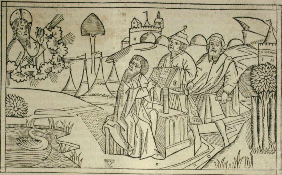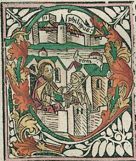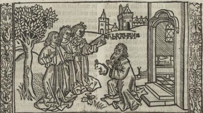 1476: Bíblia de l'impressor Jodokus Pflanzmann (Pflanzmann Bibel, Ausburg). Tot i que era el seu competidor, segueix molt de prop les característiques tipogràfiques de la Bíblia de Zainer. Atès el seu format, és la Bíblia més gran de les impreses abans de la Bíblia lutherana. Compta amb 55 xilografies, la majoria de les quals són d'un estil més aviat matusser i poc refinat. | ![]() | |