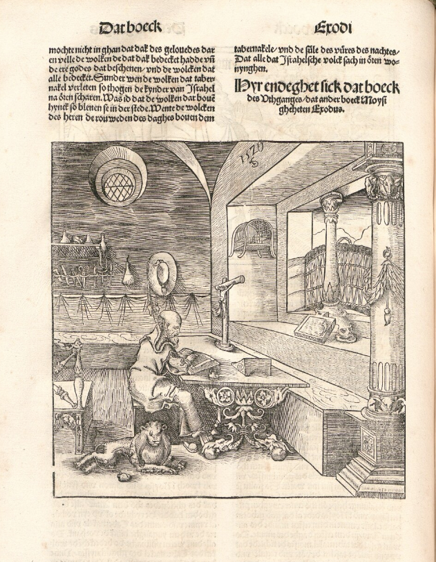 | 1518: Bíblia de l'impressor Silvan Otmar, fill. (Otmar Bibel). La 14a i última Bíblia prelutherana impresa en altalemany, fou publicada a Augsburg per Otmar (1481–1540). Es tracta d'una còpia gairebé exacta de la 13a Bíblia alemanya publicada pel seu pare Johann Otmar el 1507, que seguia el format més manejable que havia adoptat uns anys abans l'impressor d'Estrasburg, Johann Grüninger (1485). Les belles xilografies també estan preses de la Bíblia impresa el 1507 per Otmar pare. Probablement, les xilografies es van acolorir en sèrie al taller amb ajuda de plantilles. Otmar va col·locar aquesta Bíblia a dues columnes en un tipus Schwabacher fàcilment llegible. El text és una adaptació d’una traducció anònima de la Vulgata de la segona meitat del segle XIV. | |