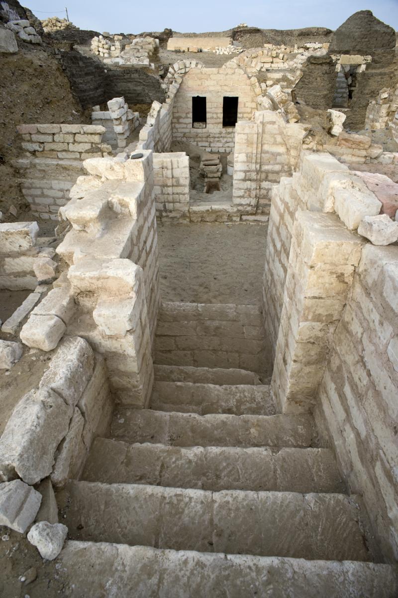 Vista de l’escala d’entrada, el vestíbul i tres cambres funeràries. A l’interior es van trobar nombrosos individus momificats, la majoria coberts amb cartonatges i màscares policromats.