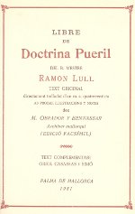 Llull R. Libre de doctrina pueril. [Ed. Facsímil,: Barcelona, 1907]. Palma de Mallorca; 1981. Col·lecció personal del Dr. Cruz |  |