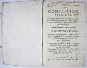 Obra apòcrifa. Possiblement es tracta d’una edició contrafeta impresa a Mallorca un segle més tard. L'atribució del verdader autor Astruc de Cortielles, teòleg del segle XV, la fa Nicolàs Antonio. Es tracta d´una defensa de la virginitat de la Mare de Déu. Malgrat a portada aparegui Llull com a autor, en realitat l’autor fou Cortielles. D’altra banda, el peu d’impremta és fals. A Brussel·les, en aquesta època, les edicions no tenien aquest aspecte, que correspon molt més a les edicions fetes a Mallorca durant el segle següent.