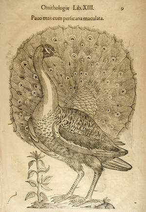 Podem veure alguns gravats de paons i d'aus extrets de: Vlyssis Aldrovandi ... ornithologiae hoc est de avibvs historiae libri XII. Bonon. : apud Nicolaum Tebaldinum : sumptibus Marci Antonij Berniae, 1646 (1645), amb el detall de les ales que, en algunes de les còpies conservades a Bolonya, són acolorits a mà.