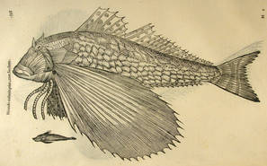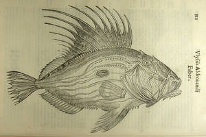 Vlyssis Aldrovandi ... De piscibvs libri V. et de cetis lib. vnvs / Ioannes Cornelivs Vterverivs ... collegit ; Hieronymvs Tambvrinvs in lucem edidit ... Bononiae [Bolonya] : apud Bellagambam, 1613 (Bononiae : Apud Ioannem Baptistam Bellagambam, sumptibus Hieronymi Tamburini, 1612) conté desenes de gravats de gran precisió amb nombrosos peixos que va estudiar en profunditat.