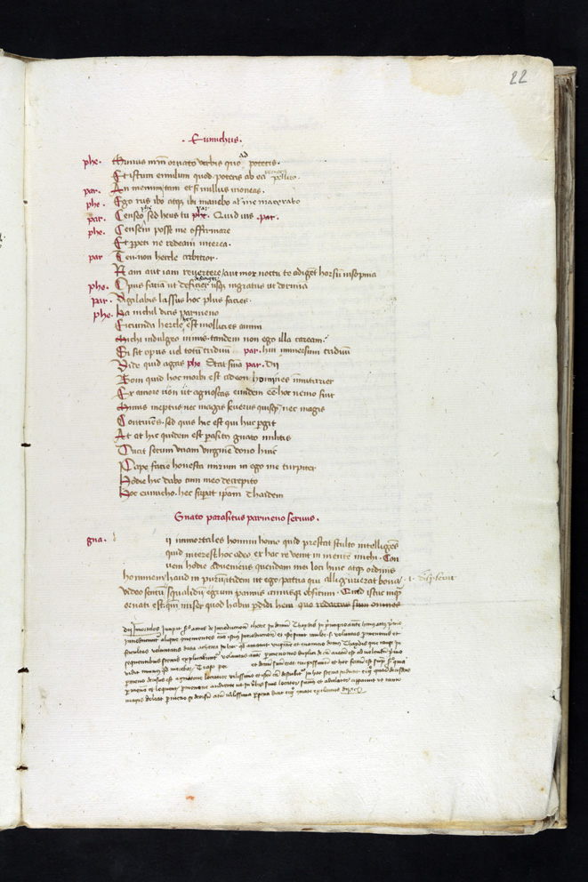 Contingut: Terentii comoediae: Andria, Eunucus, Heautontimorumenos, Adelphoe, Hecyra, Phormio.