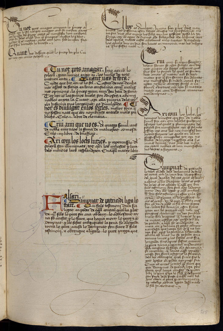 Manuscrit sobre pergamí i paper. Antic propietari: Francesc Desplà (s. XV). Prové del convent de Sant Josep de Barcelona.