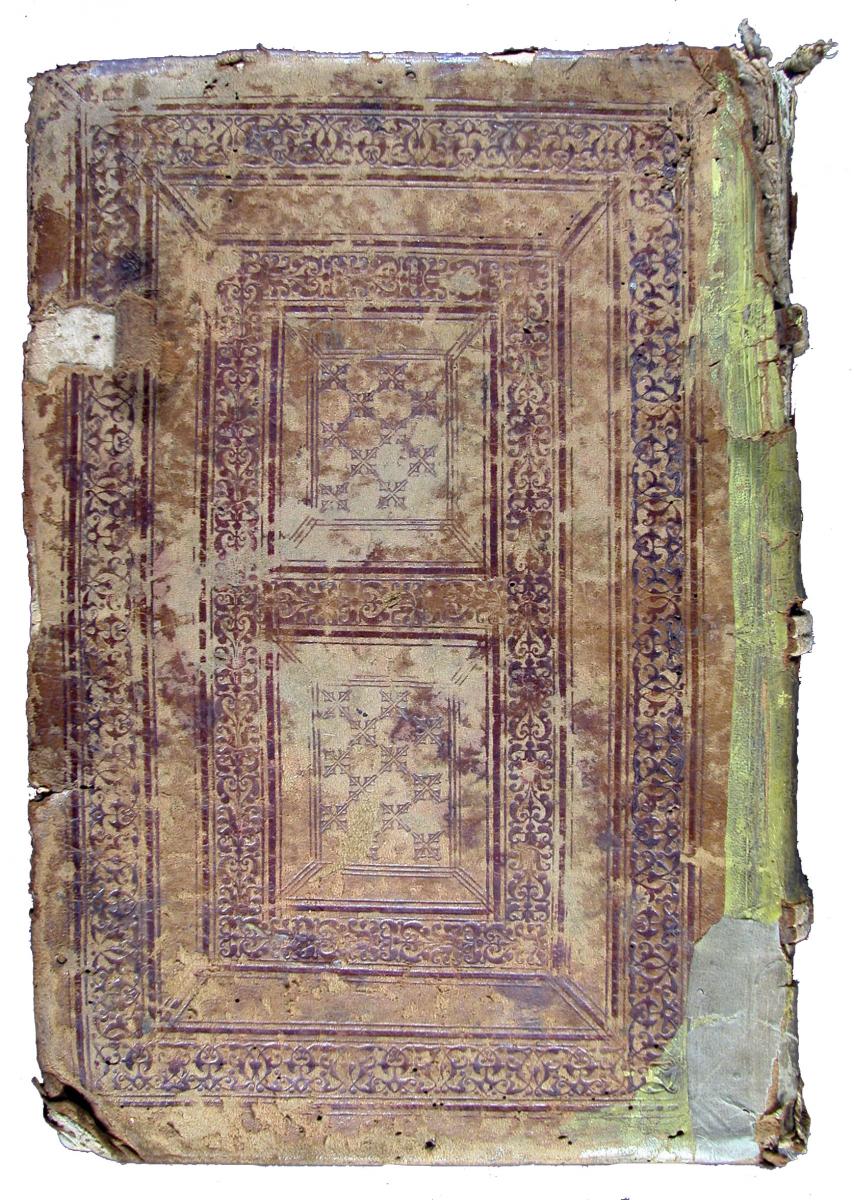 Enquadernació de pell d’ovella sobre cartó contraencolat. d’estil mudèjar-renaixentista de banda rectangular. Finals del segle XV, principis del XVI.