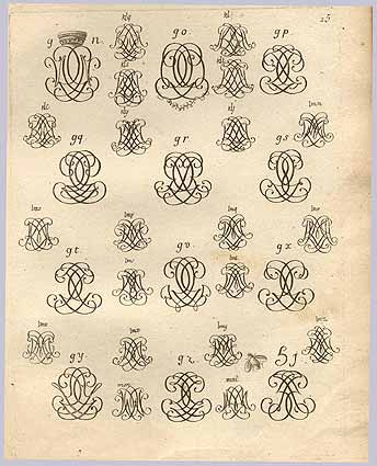 Utilitzats per senyalar una propietat o per identificar el creador o productor d'un determinat objecte, els monogrames van ser molt populars. Veiem com l'autor aprofita l'avinentesa i es fa publicitat des de les pàgines del seu llibre.