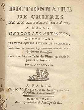 Pouget, Jean-Henri-Prosper. Dictionnaire de chifres et de lettres ornées a l'usage de tous les artistes. A Paris : chez N.M. Tilliard, 1767. (07 XVIII-7948)