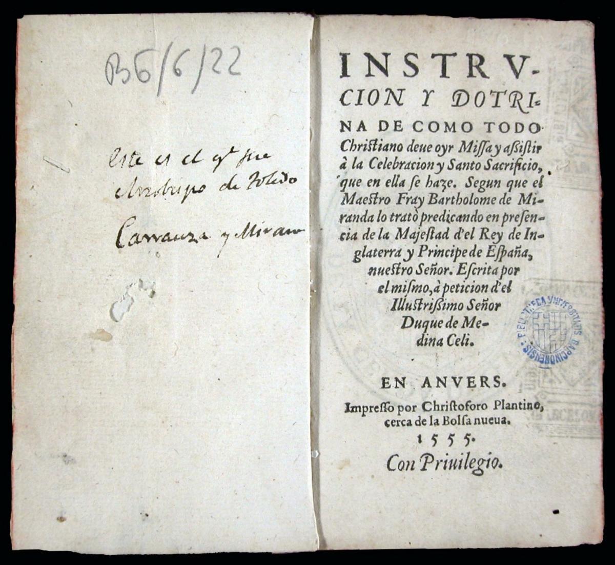 L’autor va ser frare dominicà i teòleg. Assistí al Concili de Trento. Posteriorment, sent arquebisbe de Toledo, fou detingut per heretgia i empresonat vuit anys a Espanya i nou a Roma, on morí. Aquest tractat va ser imprès per encàrrec del duc de Medinaceli, que aleshores es trobava als Països Baixos, a partir d’una conferència impartida per Carranza a la Capella Reial de Kingston, Anglaterra, davant del príncep Felip d’Espanya (més tard Felip II) i la reina Mary.