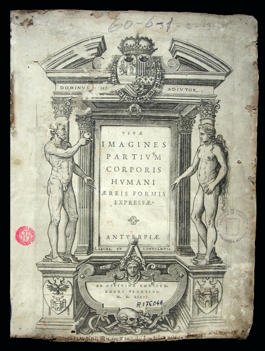 Aquest és un dels exemplars de l’obra de Valverde de Amusco editada per Plantin, amb portada datada 1572 i mentre que al colofó figura l’any 1579.