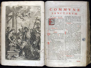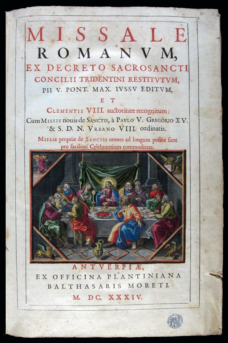 Missale Romanum ex decreto sacrosancti concilii Tridentini restitutum, Pii V. Pont. Max. iussu editum et Clementis VIII. auctoritate recognitum. Anvers : ex officina Plantiniana Balthasaris Moreti, 1634.