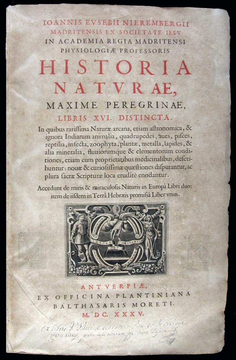 Nieremberg, Juan Eusebio. Ioannis Eusebii Nierembergii … Historia naturae, maxime peregrinae, libris XVI, distincta. Antuerpiae : ex Officina Plantiniana Balthasaris Moreti, 1635.
