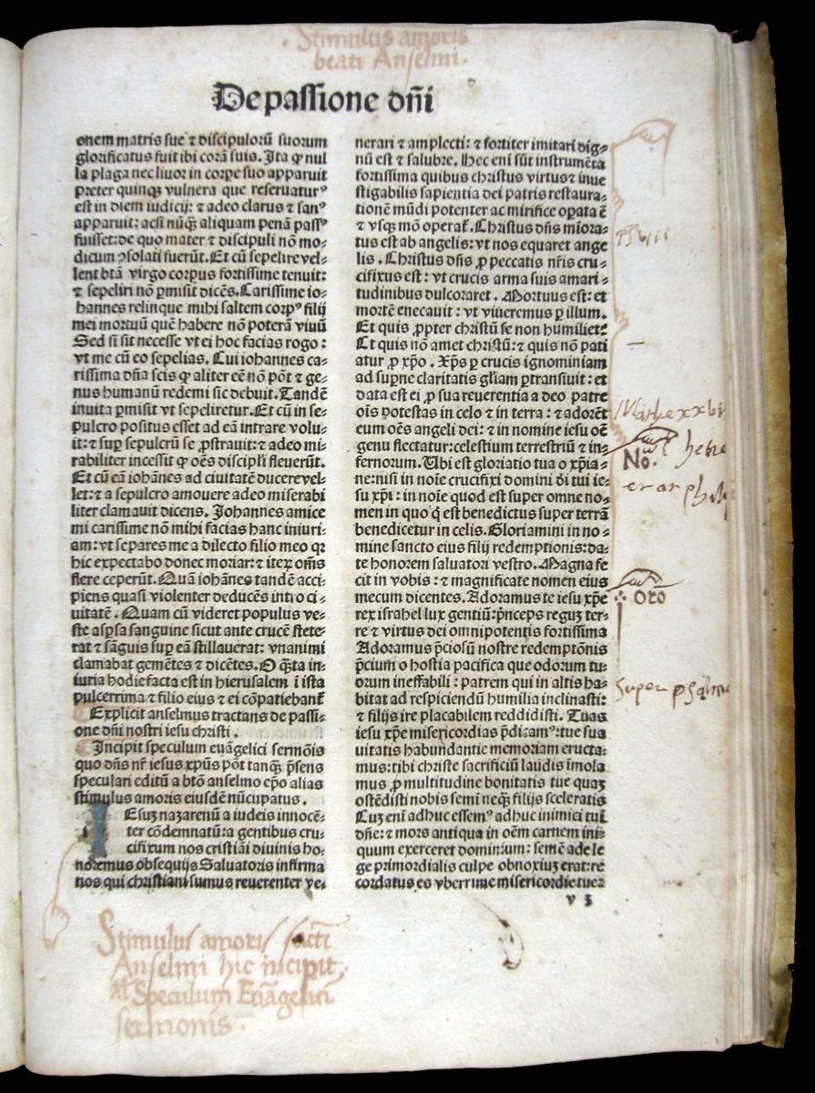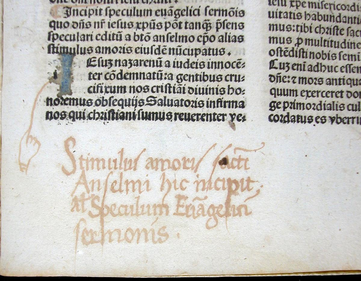 Nota de compra al f. [et]5 verso (23.VIII.1492): “Haec divina opuscula divi Anselmi Petrus Michael Carbonellus, regius archivarius, comparavit pretio exoluto XXIII augusti anno salutis Mº CCCCº LXXXXII, Ferrando II foeliciter regnante”.