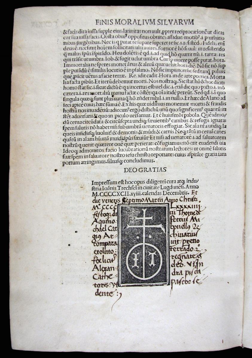 Nota de compra al f. F5 verso (7.III.1494): “Et die veneris septimo martii anno Christi Mº CCCCº LXXXXIIIIº festoque divi Thomae de Aquino, Petrus Michael Carbonellus, regius archivarius, comparavit pretio exoluto, Ferrando 2º foeliciter regnante et Alexandro VI in cathedra piscatoris ut pastor sedente”.