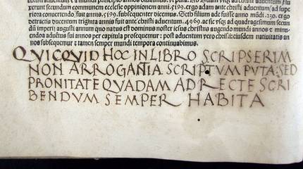 Supplementum huiusmodi chronicorum bibliothecae coenobii seraphici Francisci, agri barcinonensis, ego Petrus Michael Carbonellus, regius archivarius, dono dedi ex voto hocque scripsi die XXVº mensis maii anno salutis Mº CCCCº LXXXXVº, Ferrando secundo foeliciter regnante. Telos”.