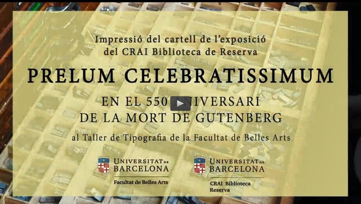 Vídeo divulgatiu que mostra el procés d'elaboració del títol dels cartells de l'exposició Prelum celebratissimum “la premsa tipogràfica més festejada” amb una impremta manual al Taller de Tipografia de la Facultat de Belles Arts.