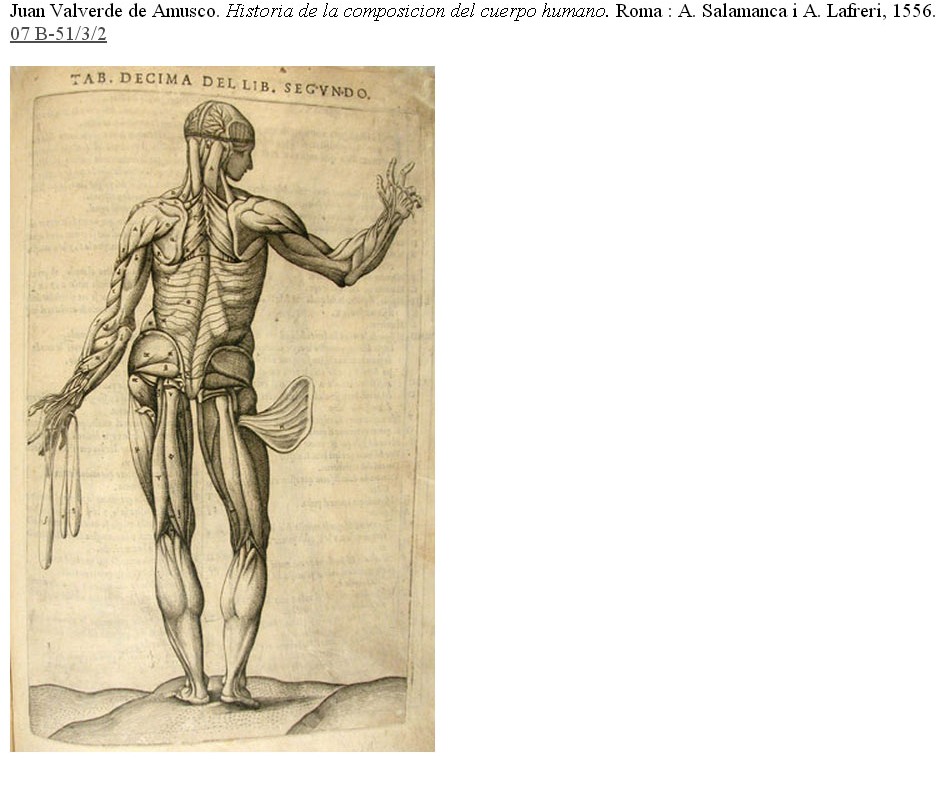 Aquesta secció la clou l'obra Historia de la composición del cuerpo humano de Juan Valverde de Amusco. Valverde havia estudiat medicina a Pàdua i fou a Roma el metge del cardenal Juan de Toledo.