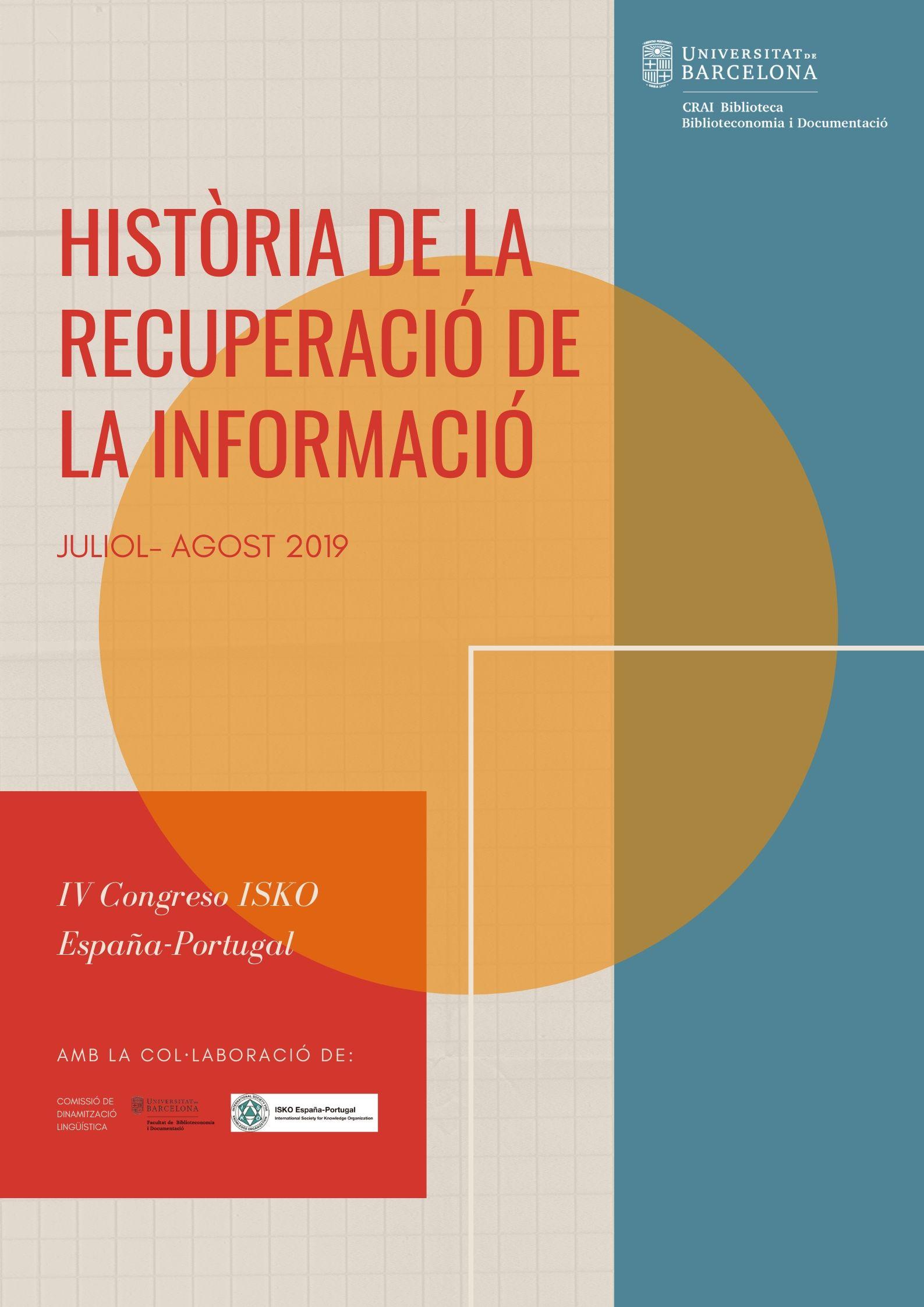 El IV Congreso ISKO Espanya - Portugal 2019 amb el lema 'Organización del conocimiento para la explotación de colecciones patrimoniales y archivos audiovisuales' va tenir lloc l'11 i 12 de juliol del 2019 a la Facultat de Biblioteconomia i Documentació. Per a aquest esdeveniment es va realitzar l'exposició Història de la recuperació de la informació, que fa un recorregut cronològic per tota la història de la recuperació de la informació des del primer terç del s. XIX fins a l’actualitat amb llibres del nostre fons i textos del professor de la Facultat Jesús Gascón.