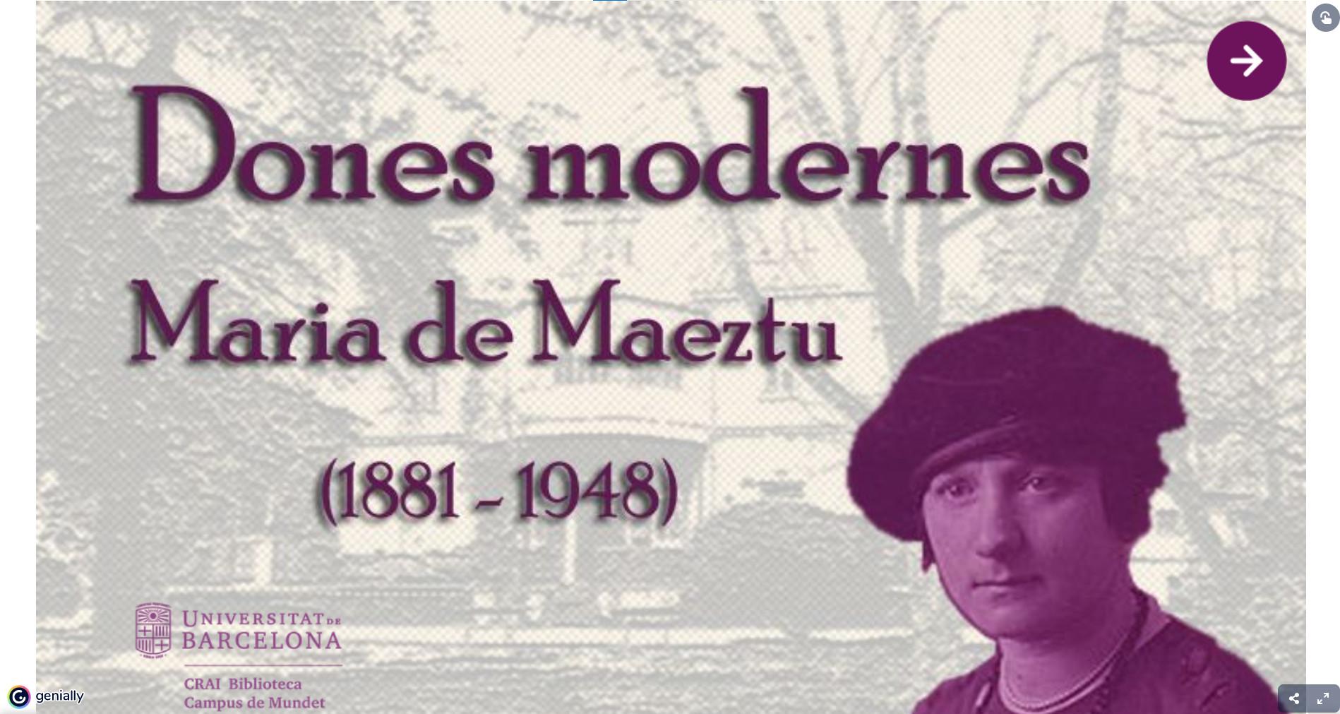 En commemoració dels 75 anys de la mort de Maria de Maeztu, el CRAI Biblioteca del Campus de Mundet es complau en publicar l’exposició virtual Maria de Maeztu i les dones modernes. Amb ella es vol donar visibilitat a aquesta insigne personalitat, com una de les pedagogues més rellevants del segle XX, i a un conjunt de dones que van destacar per la seva excel·lència en el seu camp d’actuació professional. Totes elles tenen com a vincle la Residencia de Señoritas fundada per Maria de Maeztu l’any 1915 que va estar operativa fins l’any 1939, un cop finalitzada la Guerra Civil Espanyola.