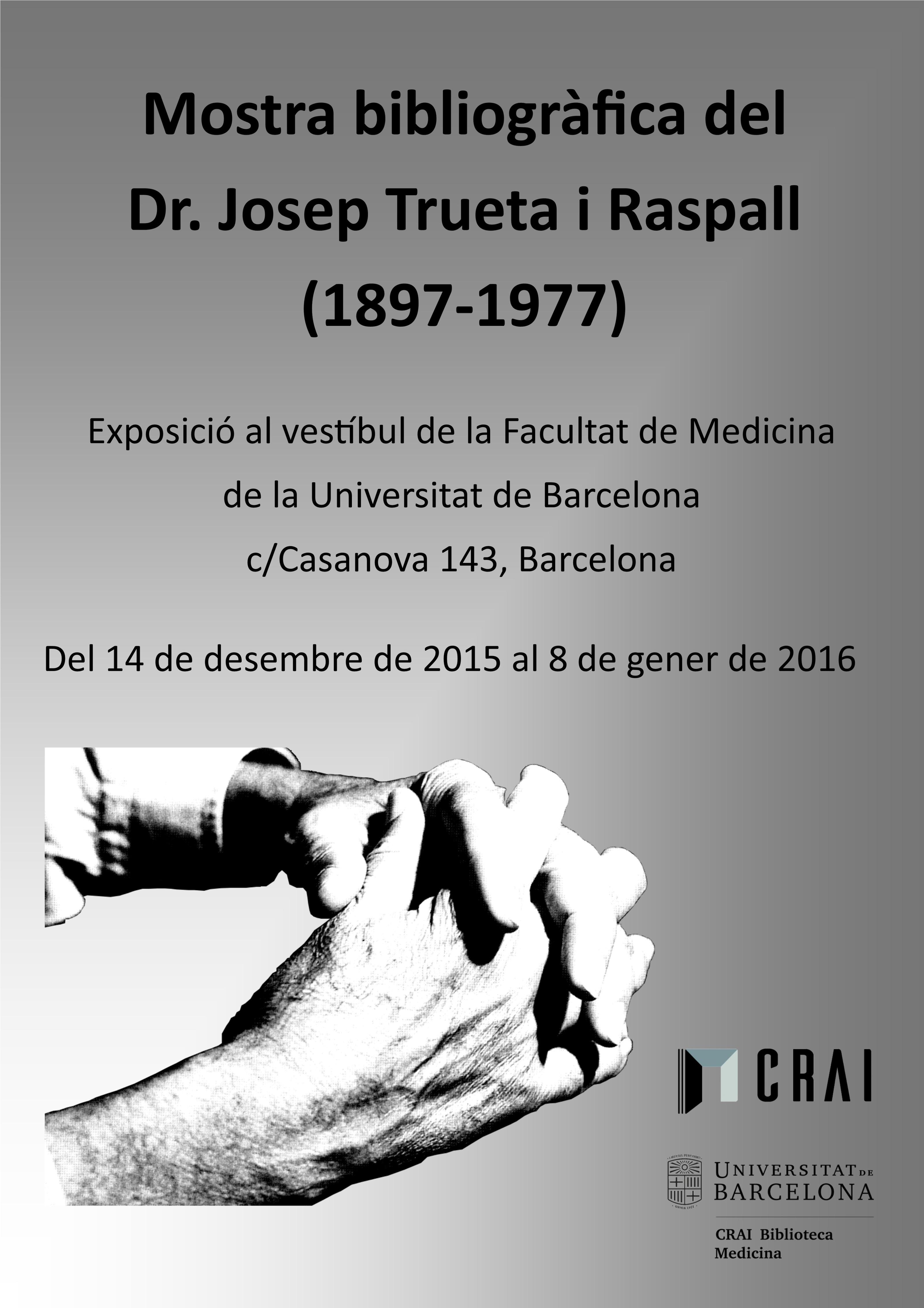 El 18 de desembre del 2015 la Facultat de Medicina de la Universitat de Barcelona, juntament amb l’Hospital Clínic de Barcelona, va organitzar un acte Homenatge al Professor Josep Trueta i Raspall (1897-1977). Per aquest motiu, el CRAI Biblioteca de Medicina – Campus Clínic – ha preparat una mostra bibliogràfica de l’obra de Dr. Josep Trueta com a català universal mostrant les seves aportacions en el camp de la ciència i la política.