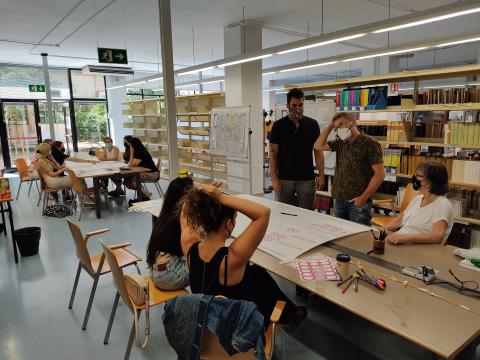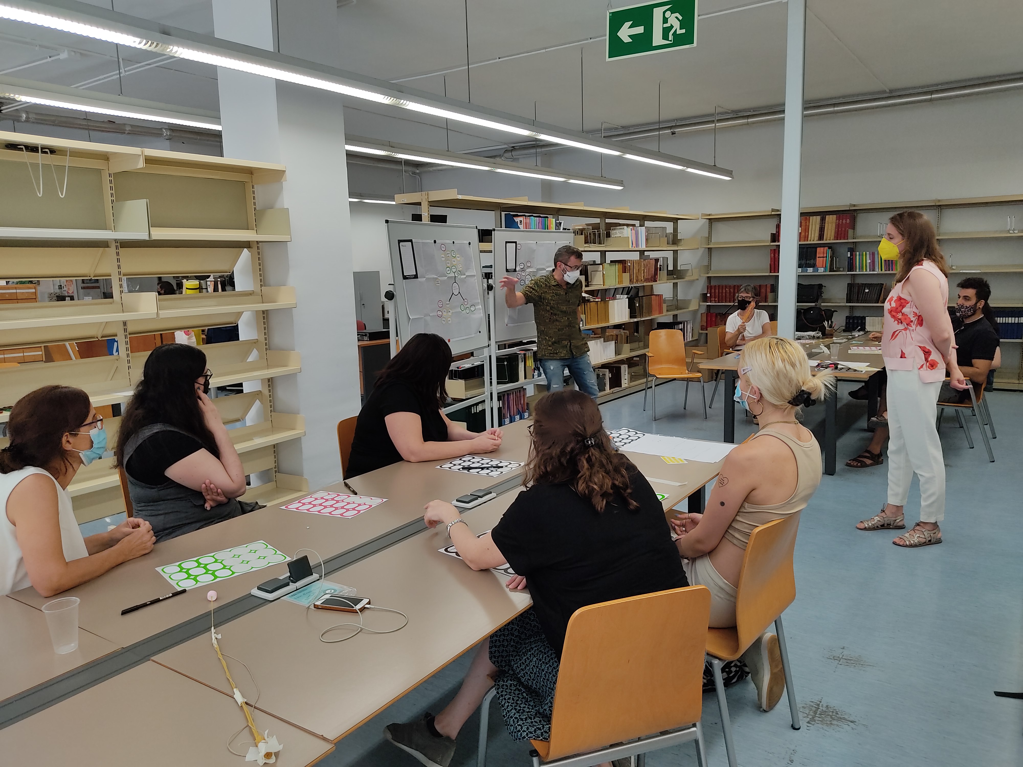 El taller ha estat format per professors de la Facultat d’Informació i Mitjans Audiovisuals, tant de CAV com de GIDD, alumnes dels dos graus, un representant de la Unitat de Projectes del CRAI i un del CRAI Biblioteca. El taller l'ha conduit l’Anna Ripoll, d’Intuïtiva.