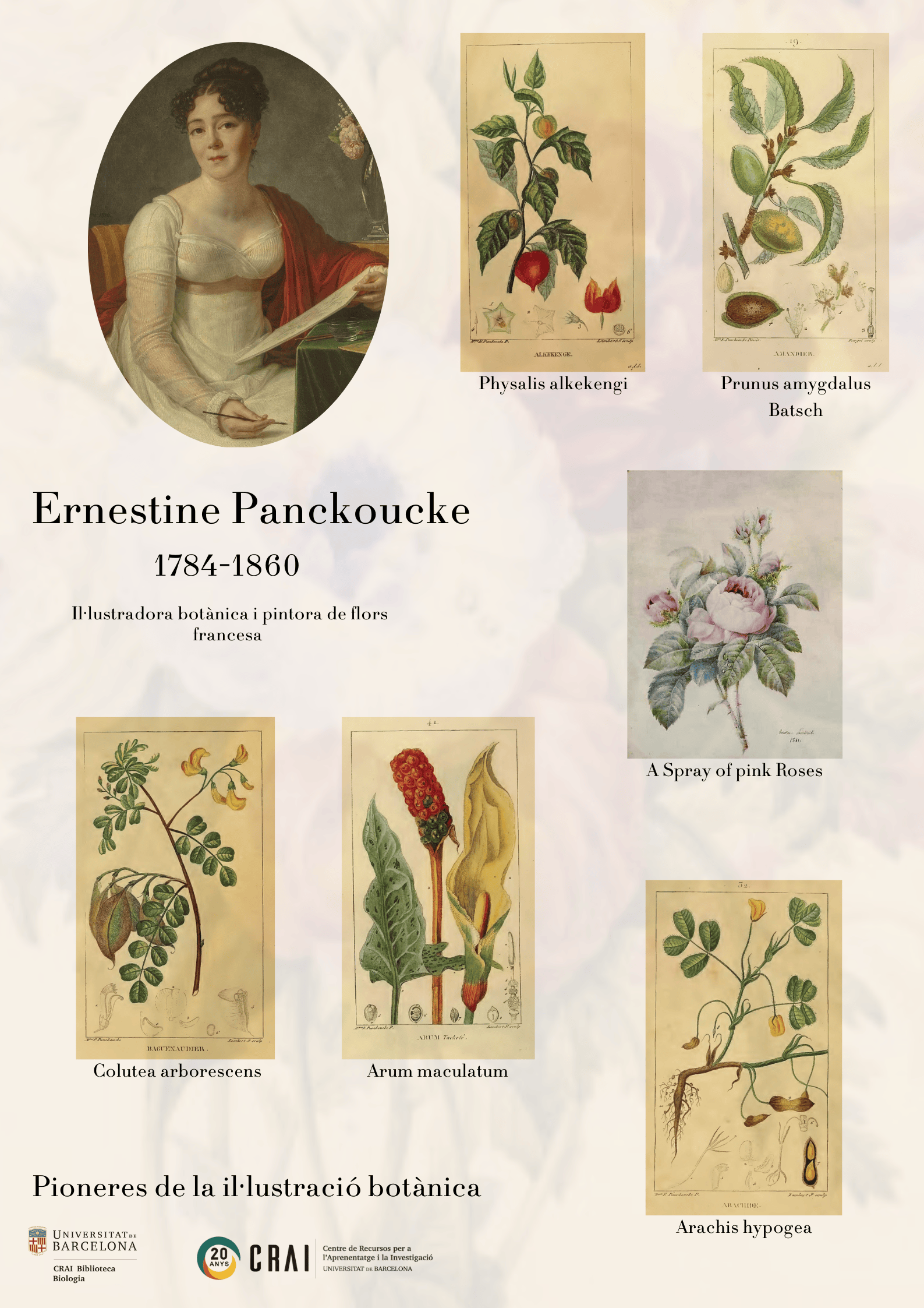 La mostra, que porta per títol Pioneres de la il·lustració botànica consisteix en l'exposició de diversos cartells de grans dimensions, distribuïts pels espais de la biblioteca, dedicat cada un d'ells a una naturalista i il·lustradora botànica diferent dels segles XVII i XVIII, com per exemple Maria Sibylla Merian, Elizabeth Blackwell o Ernestine Panckoucke. També s'han decorat les taules de la biblioteca amb reproduccions d'algunes de les seves obres.