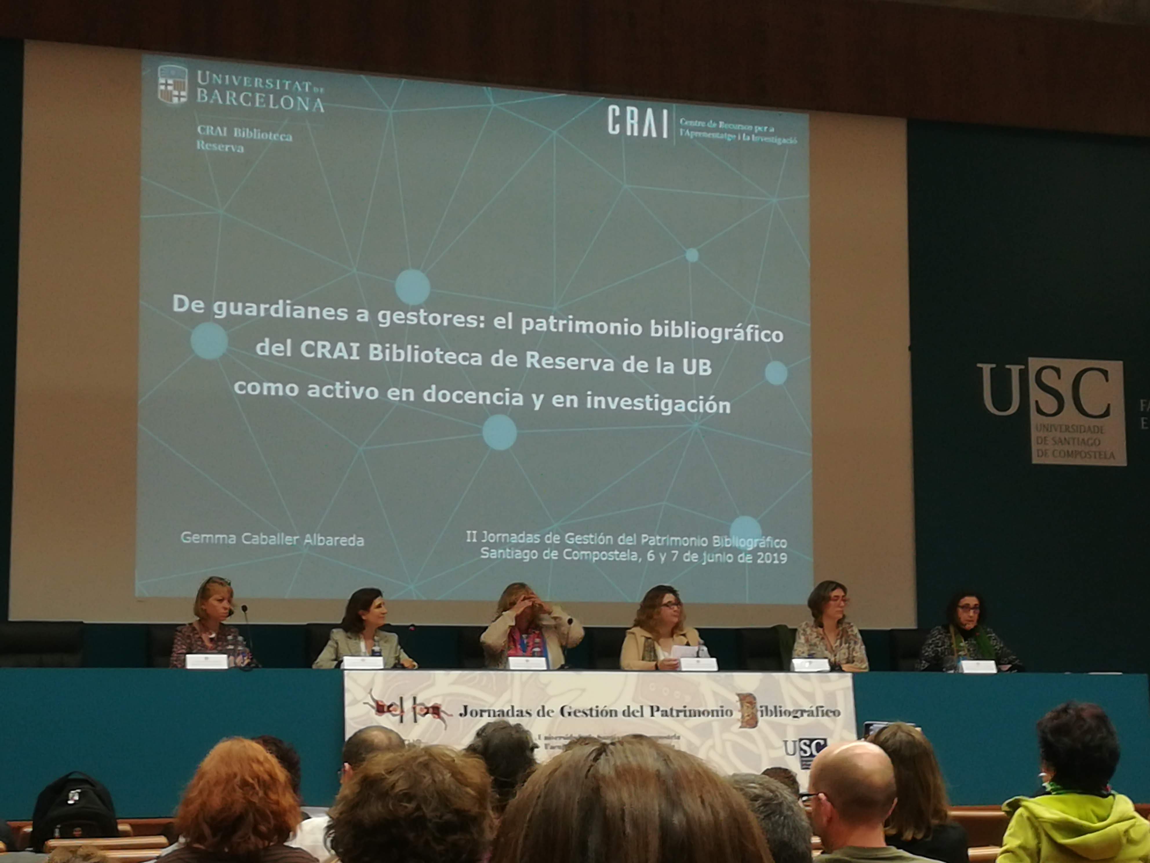 Els passats dies 6 i 7 de juny han tingut lloc les II Jornadas de Gestión del Patrimonio Bibliográfico de REBIUN a la Universitat de Santiago de Compostela. Les Jornades estan organitzades pel Grupo de Trabajo de Patrimonio Bibliográfico en el que participa el CRAI Biblioteca de Reserva amb la representació de la seva cap, Neus Verger