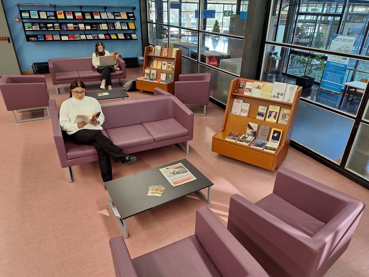 A banda del mobiliari, l’espai ofereix premsa diària i un accés destacat al fons de novel·la del CRAI Biblioteca.