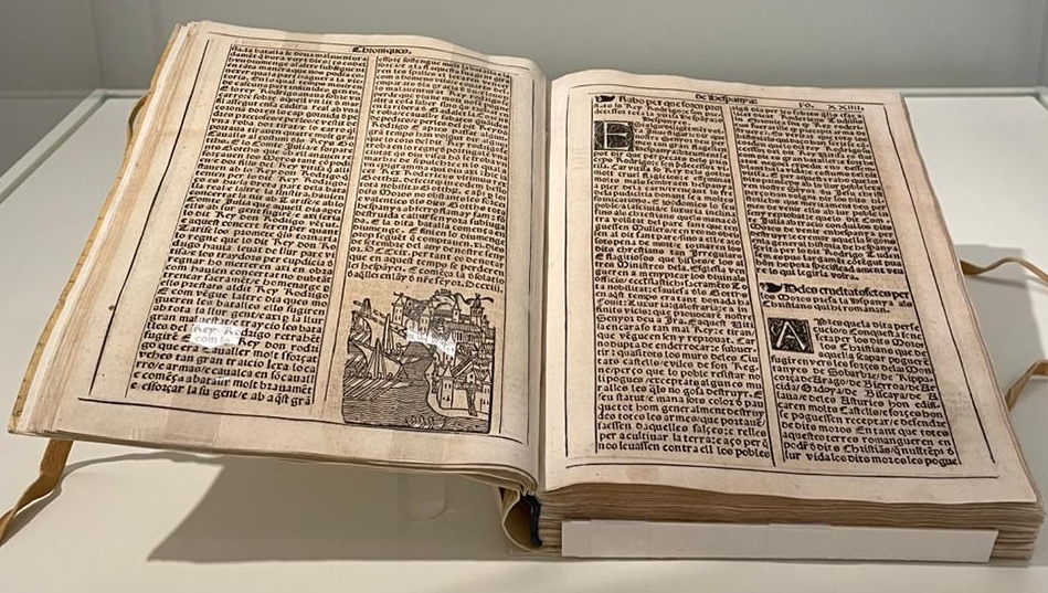 Es tracta de les conegudes Cròniques d’Espanya de Pere Miquel Carbonell, impreses a Barcelona per Carles Amorós el 1547. El CRAI Biblioteca de Fons Antic en custodia dos exemplars, un dels quals ha estat restaurat pel Taller de Restauració Rossell Badia amb el finançament de l’Ajuntament de Molins de Rei per a aquesta ocasió.