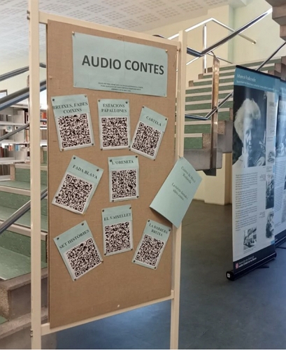 L'exposició posa el focus en un recull els contes creats pels alumnes de primària a partir de les obres de Mercè Rodoreda, que podreu escoltar en format d'audiollibre, escanejant els codis QR que trobareu a l'exposició.