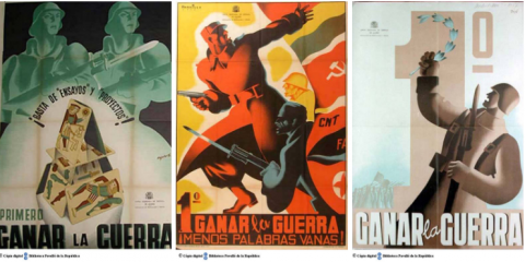 El CRAI Biblioteca del Pavelló de la República ha cedit diversos fitxers per documentar l’exposició com aquests cartells que pertanyen a la seva col·lecció: