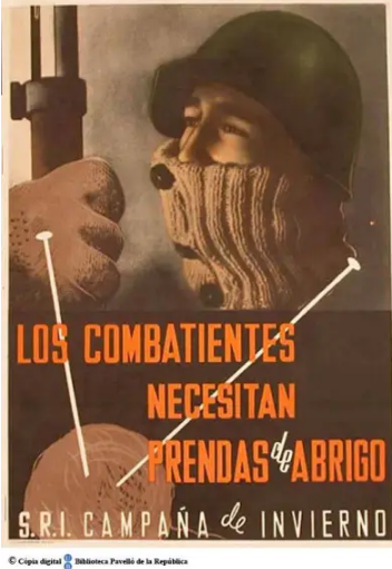 El CRAI Biblioteca del Pavelló de la República ha cedit una reproducció del cartell que porta per títol Los Combatientes necesitan prendas de abrigo que apareix al catàleg de l’exposició.
