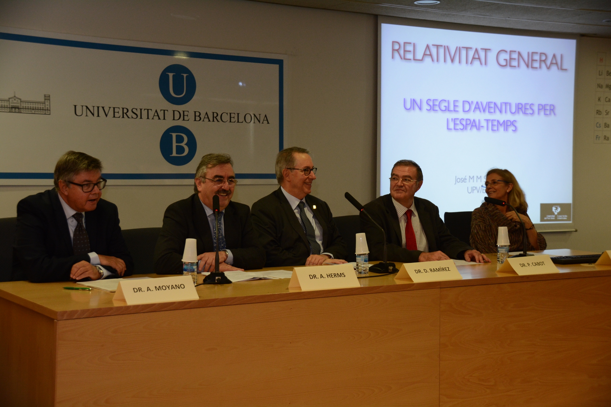 Durant l’acte, presidit pel rector de la Universitat de Barcelona, Dídac Ramírez, el catedràtic de Física Teòrica de la Universitat del País Basc, José M. Martín Senovilla, va impartir la conferència Relativitat general: un segle d'aventures a través de l'espai-temps. També van participar en l'acte el degà de la Facultat de Física, Atilà Herms; el degà de la Facultat de Química, Pere L. Cabot; el president de la Comissió d’Usuaris de la Biblioteca, Albert Moyano, i la cap del CRAI Biblioteca de Física i Química, Isabel Parés.