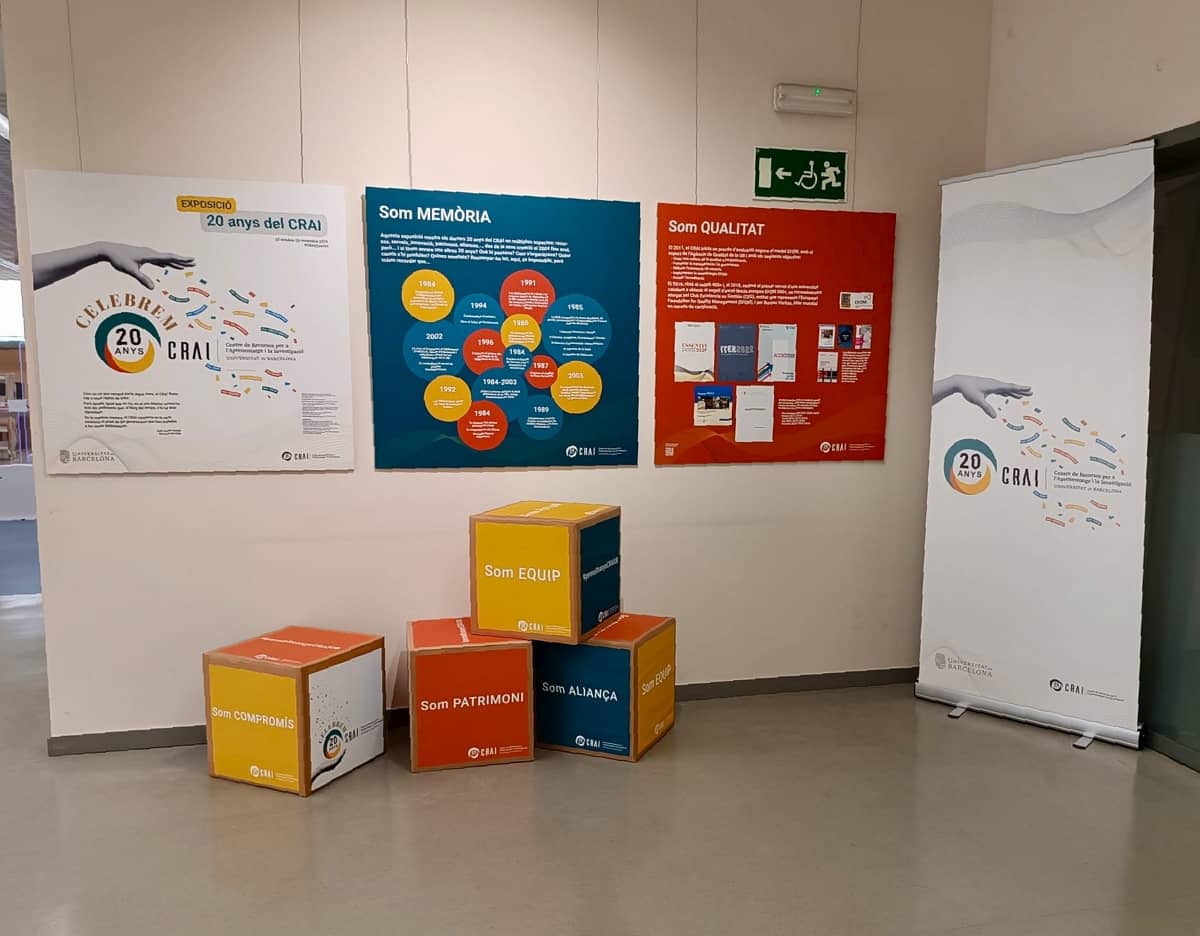 El CRAI de la Universitat de Barcelona va celebrar el seu 20è aniversari el 2024 amb la realització d’una sèrie d’activitats i amb la creació d’una exposició que es va exhibir al claustre de l’Edifici Històric.