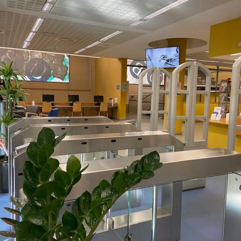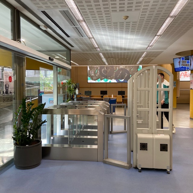 Els nous torns d’accés són més lleugers, estrets i silenciosos. S’han pogut distribuir en tres accessos independents, dos d’entrada i un de sortida, i s’ha mecanitzat la porta contigua, més àmplia, per facilitar l’accés a les persones amb necessitats especials. Una novetat important dels torns és que llegeixen els nous carnets digitals!