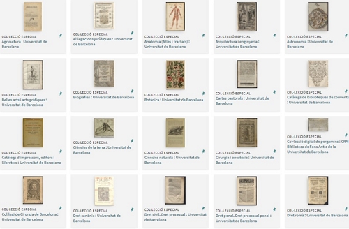 S'ha seleccionat la forma més adequada de presentar els registres bibliogràfics per a cada col·lecció, ja sigui com a conjunts lògics no detallats o com a títols individuals. En el cas dels recursos digitalitzats, que segueixen els principis d'accés obert, els registres bibliogràfics enllacen directament amb el repositori de difusió on s'ha integrat la col·lecció. En determinats casos, s'han creat subcol·leccions per a una millor organització.