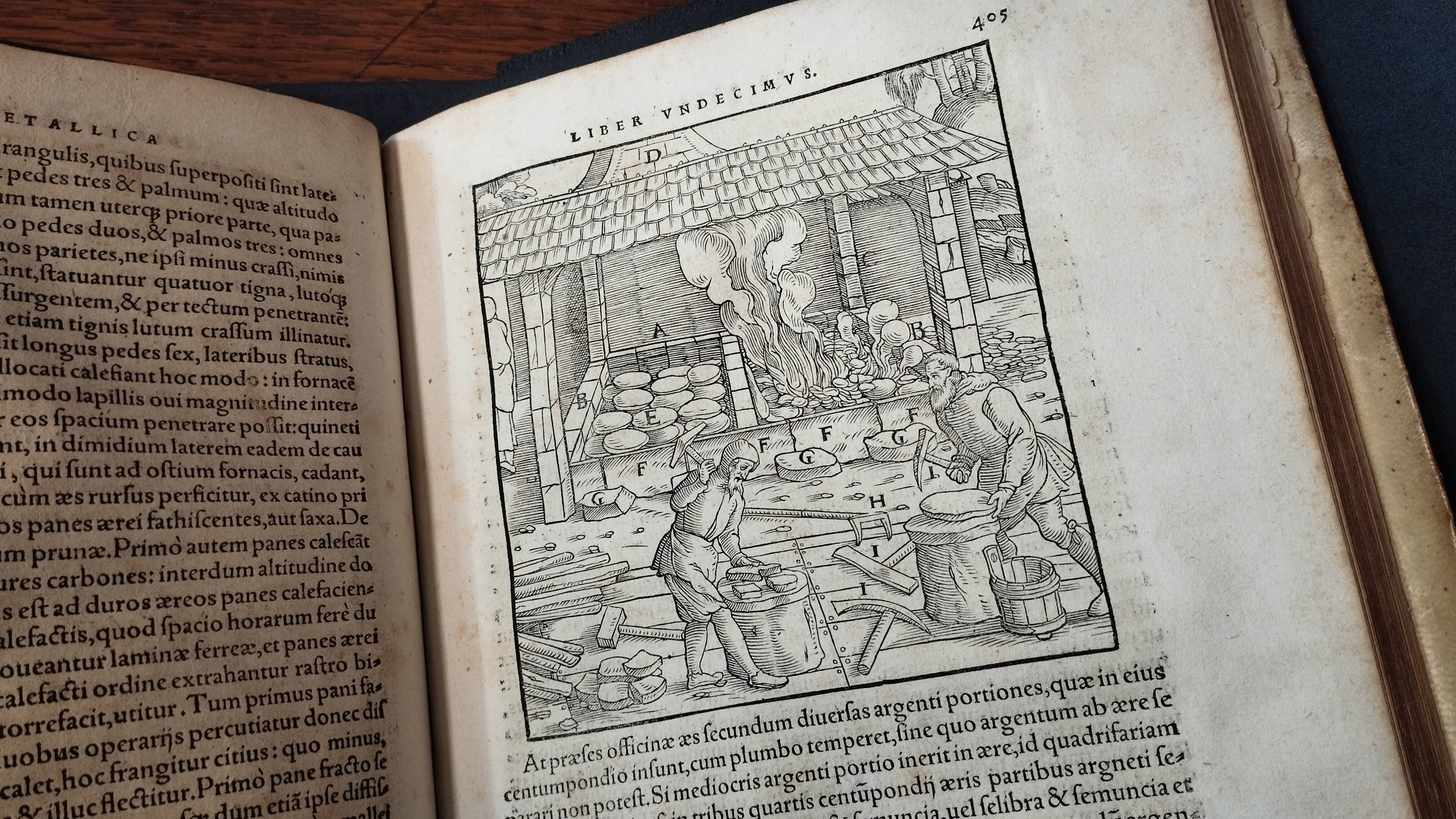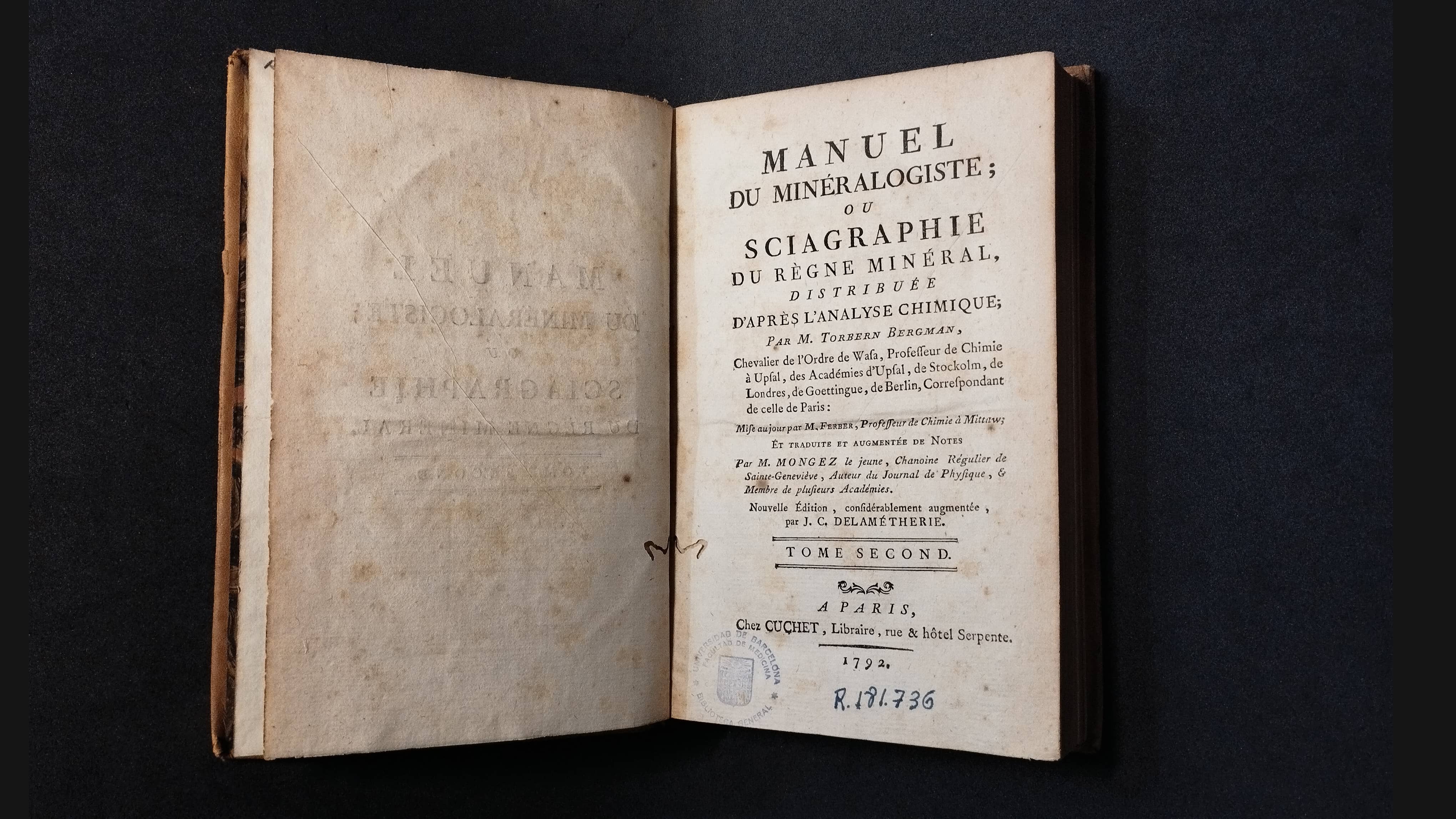 A la mostra s’exposen 14 llibres des del segle XVI al XVIII —molts d’ells amb gravats— i una estampa calcogràfica del segle XVIII relacionats amb el món dels minerals i els processos que se’n deriven com ara la mineria i la metal·lúrgia, en sis vitrines temàtiques.