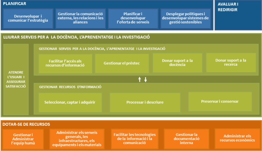 La gestió per processos és un model que permet identificar totes les activitats que realitza una organització, establir els seus responsables i les seves interconnexions i fer-ne un seguiment exhaustiu per tal de poder aplicar una filosofia d'avaluació i millora continuada, sempre amb la finalitat d'excel·lir en l'oferta de recursos d'informació i en la prestació de serveis als seus usuaris.