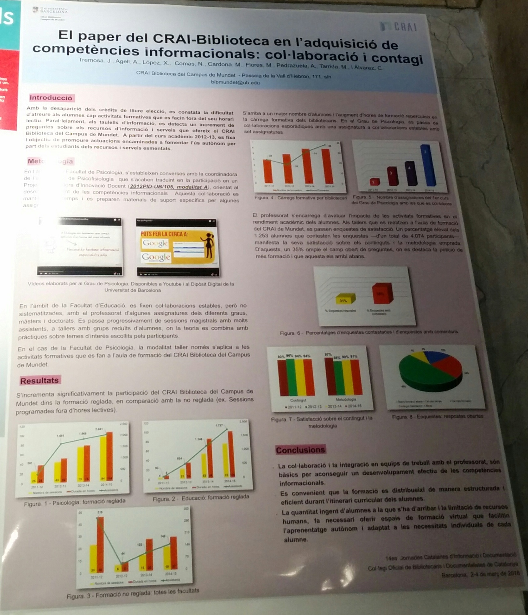 Les 14es Jornades Catalanes d’Informació i Documentació, realitzades els dies 3 i 4 de març de 2016 a l’Ateneu Barcelonès, van acollir una important participació del CRAI de la Universitat de Barcelona. Aquesta presència es va concretar en una Sessió, dues Comunicacions i dos Pòsters.